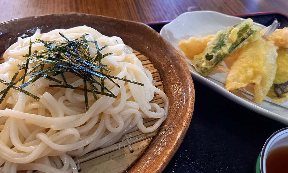 夏限定の天ぷらうどん、うまー!!!!福岡の太いやわ麺と違う、細めのコリコリ麺!