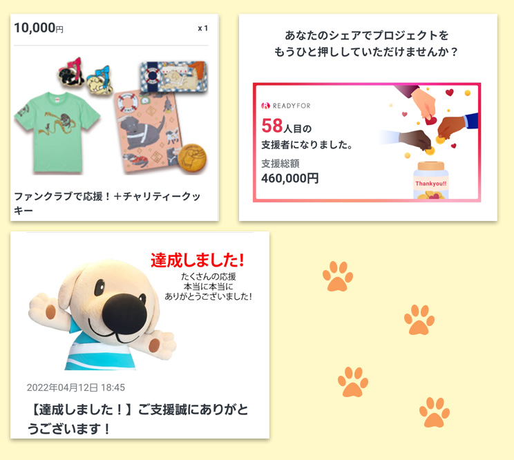よいご縁を待ちつつ、ああ…お犬と遊びたい…お犬に貢ぎたい…と思っていた矢先、ツイッターでフォローしてる盲導犬支援センターがクラウドファンディングをやっていたので、初の寄付をしました!
