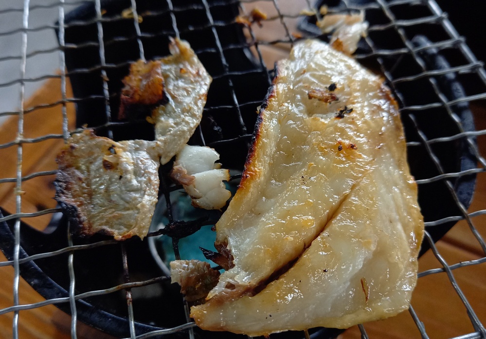 旅館で出るような小さいコンロで、自分で焼きます。楽しい~!