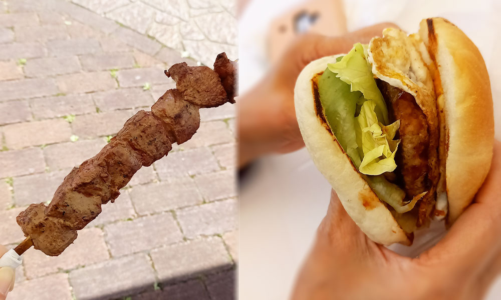 私はジビエ屋さんで鹿肉。ママンは糸島バーガーのキッズサイズ。